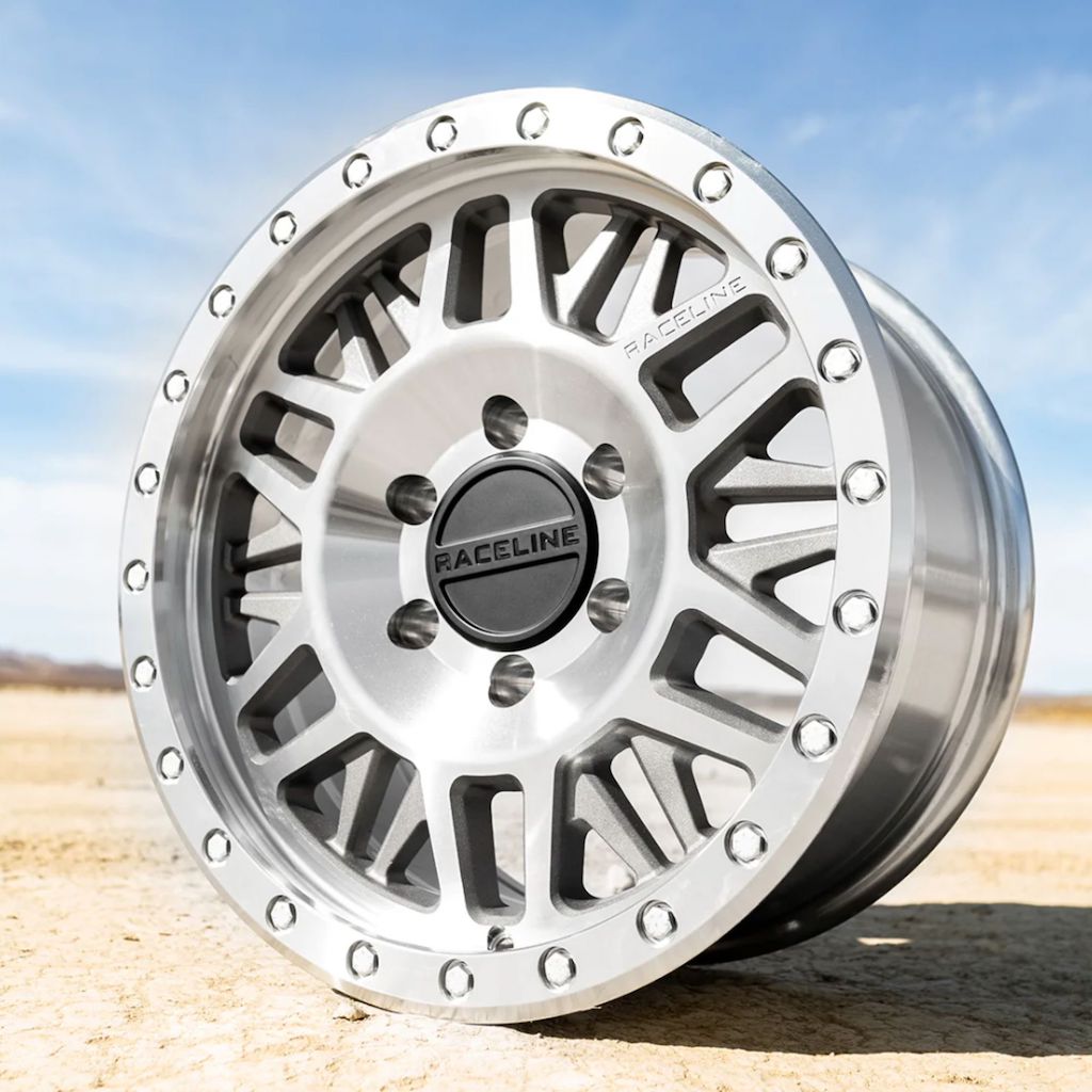 design is an absolute beast and is ready for anything you can throw it's way. Debossed Raceline logo on spoke. Simulated beadlock lip with stainless steel bolts.